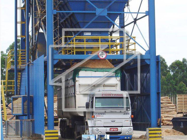 Used for loading trucks with chips or biomass, with a capacity of up to 300 m³ and a discharge time of 10 minutes.
